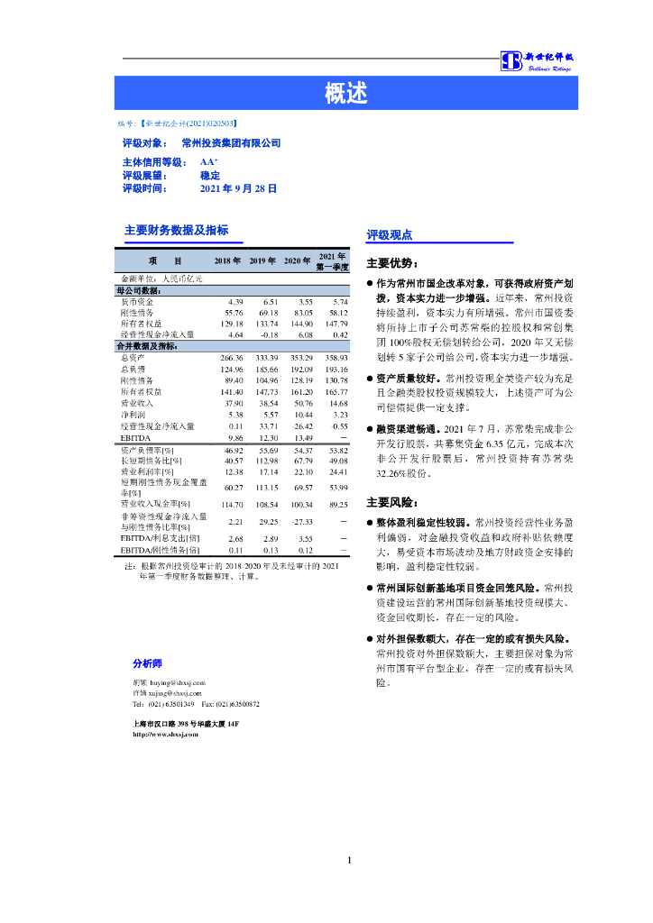 新世纪:常州投资集团有限公司主体信用评级报告及跟踪评级安排.pdf
