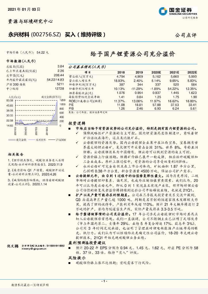 国金证券:永兴材料(002756)-给予国产锂资源公司充分溢价.pdf