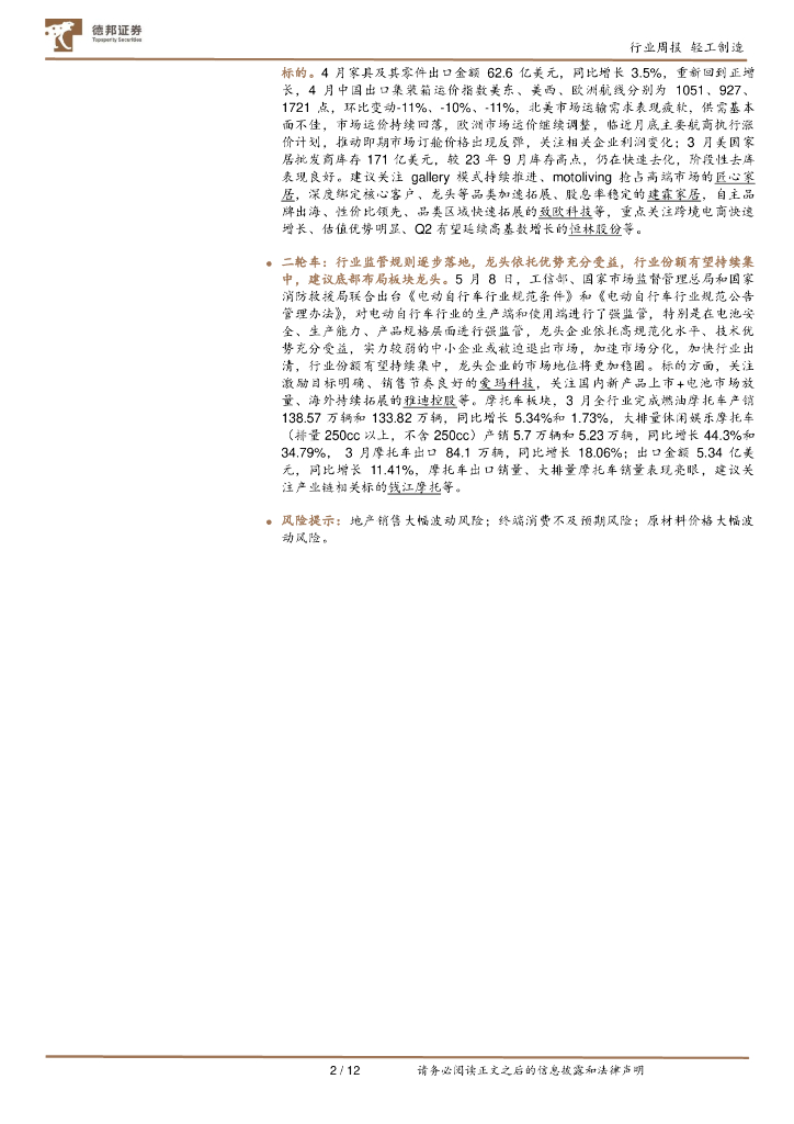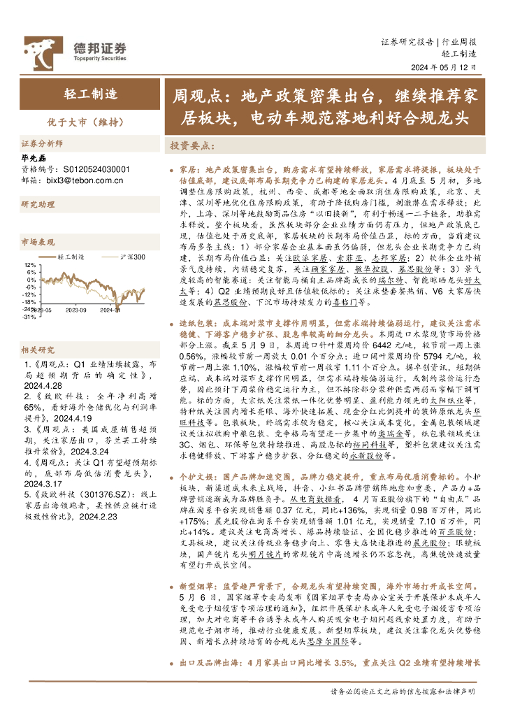 德邦证券:轻工制造行业周观点:地产政策密集出台,继续推荐家居板块,电动车规范落地利好合规龙头.pdf