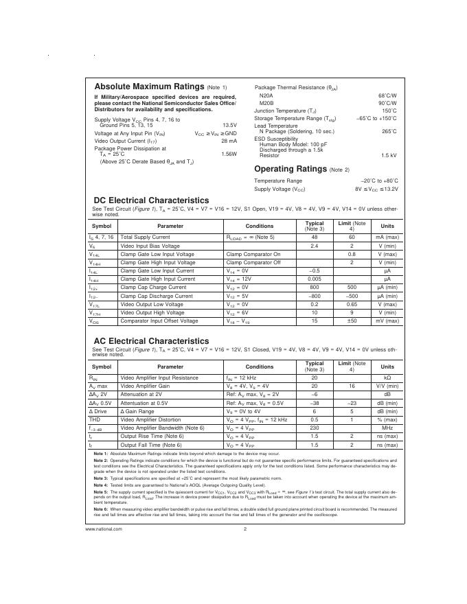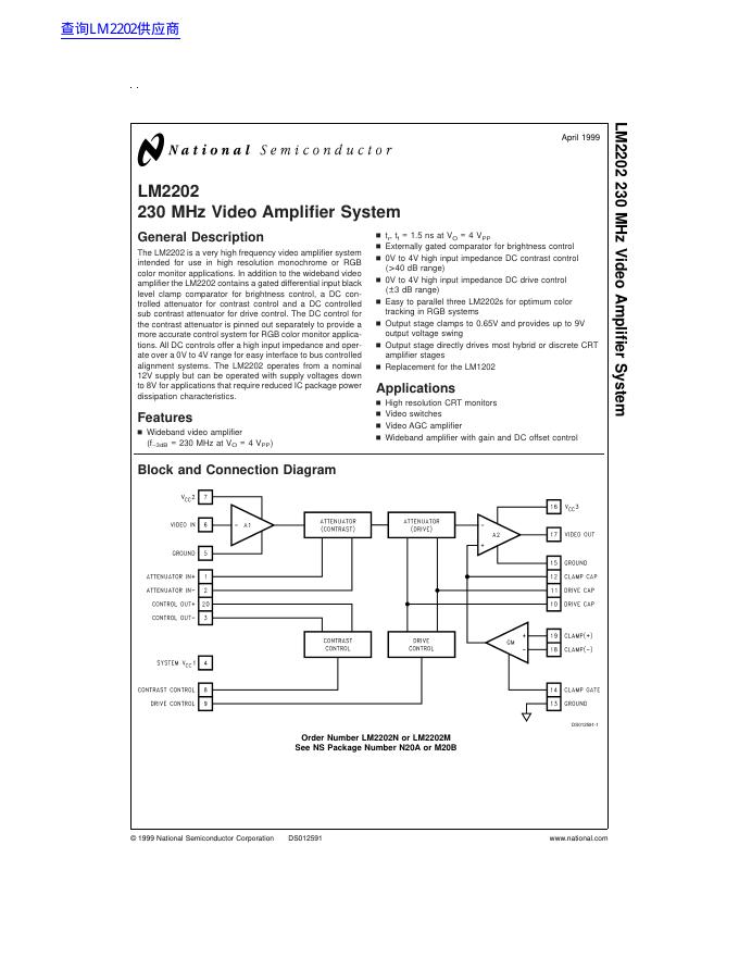 National semiconductor LM2202 230 MHz Video Amplifier System 数据手册.pdf