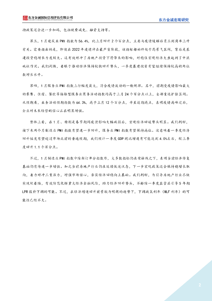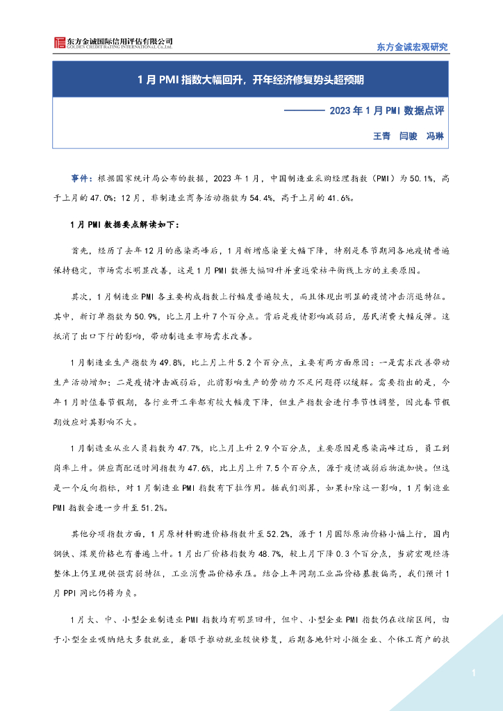 东方金诚:1月PMI指数大幅回升,开年经济回升势头超预期(2023年1月PMI数据点评).pdf