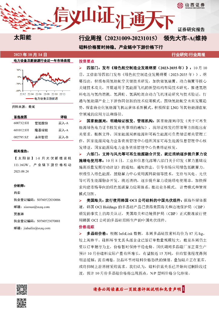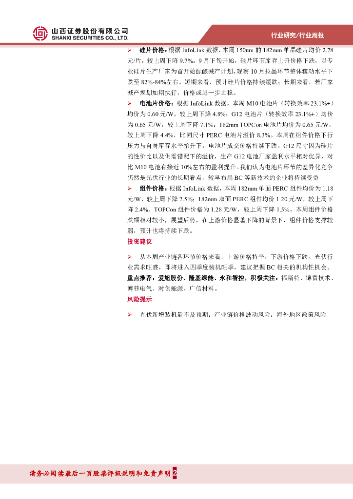 山西证券:太阳能行业周报:硅料价格暂时持稳,产业链中下游价格下行.pdf