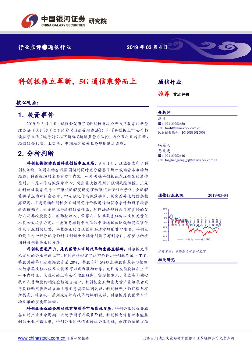 中国银河:通信行业点评:科创板鼎立革新,5G通信乘势而上.pdf