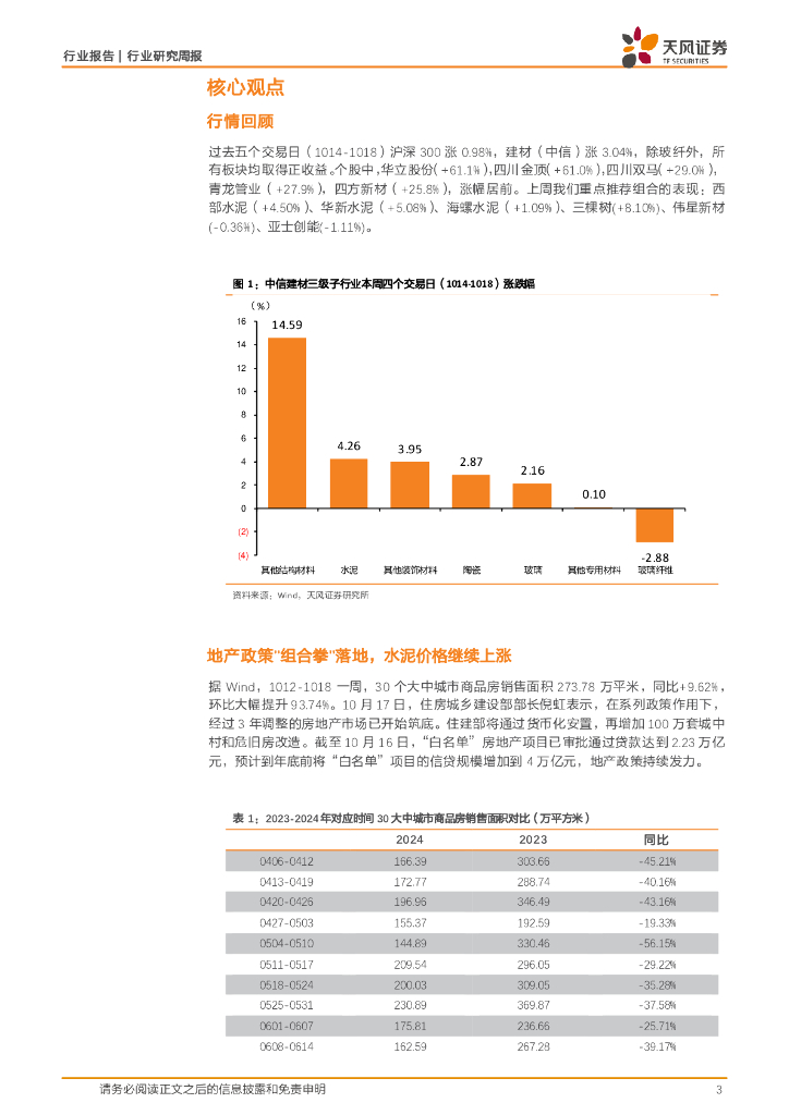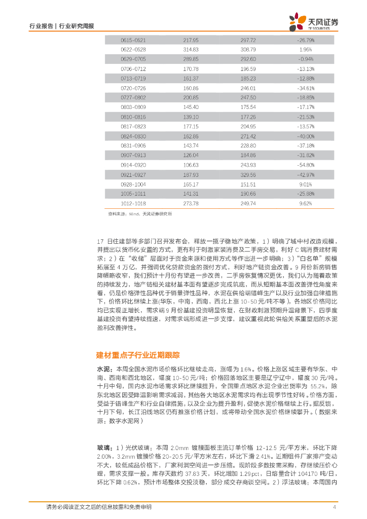 天风证券:建筑材料行业研究周报:地产政策“组合拳”落地,水泥价格继续上涨.pdf