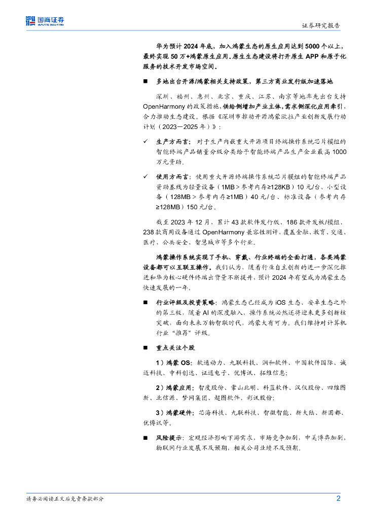 国海证券:计算机行业动态研究:鸿蒙NEXT进阶发布,原生生态千帆启航.pdf