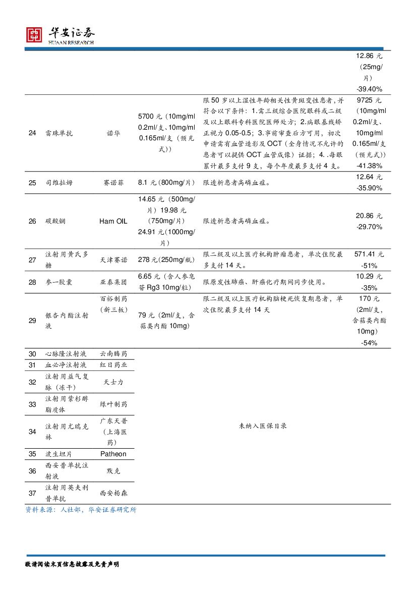 华安证券:医药生物行业政策点评:医保谈判品种结果出炉,关注相关受益股.pdf