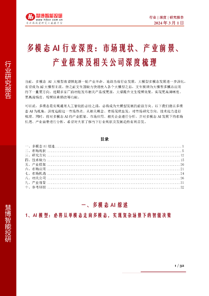 慧博智能投研:多模态AI行业深度市场现状、产业前景、产业框架及相关公司深度梳理.pdf