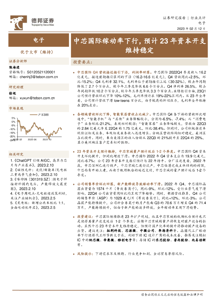 德邦证券:电子行业点评:中芯国际稼动率下行,预计23年资本开支维持稳定.pdf