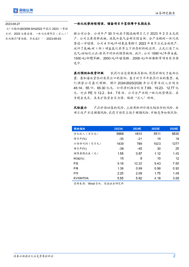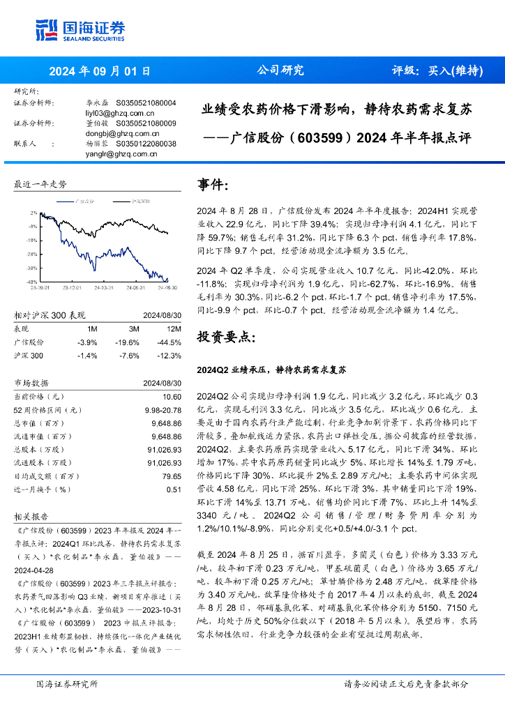 国海证券:广信股份(603599)-2024年半年报点评:业绩受农药价格下滑影响,静待农药需求复苏.pdf