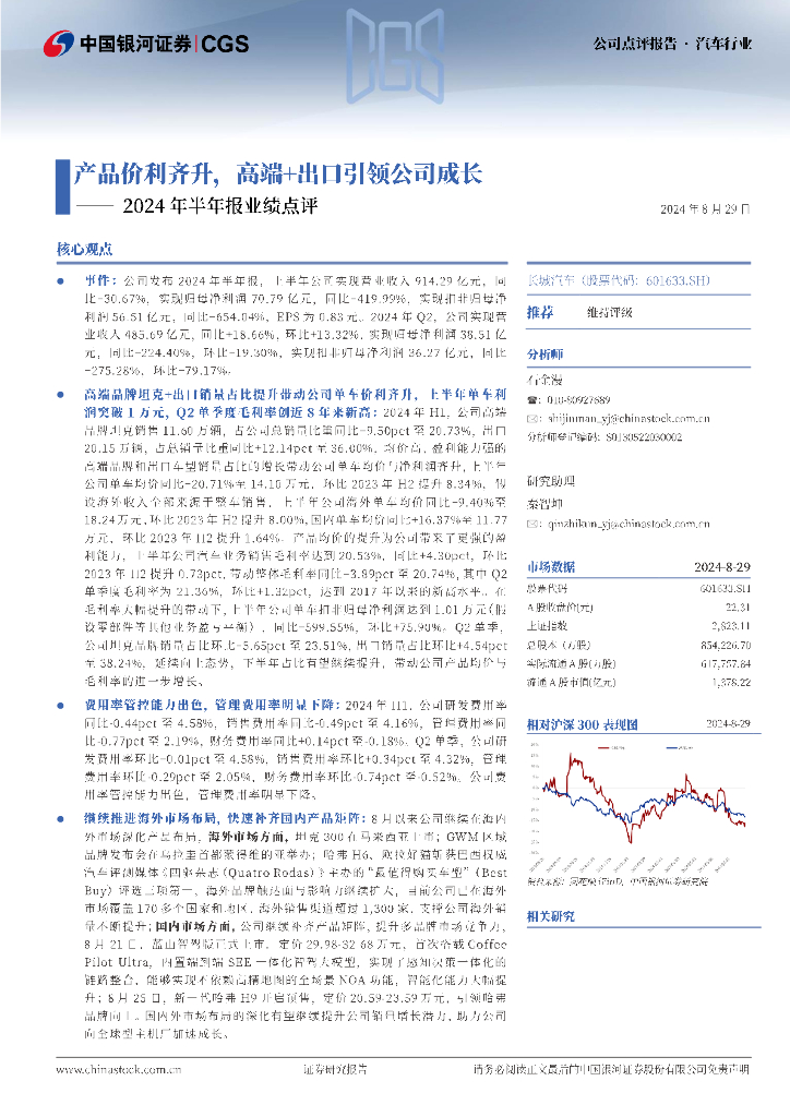 中国银河:长城汽车(601633)-2024年半年报业绩点评:产品价利齐升,高端+出口引领公司成长.pdf