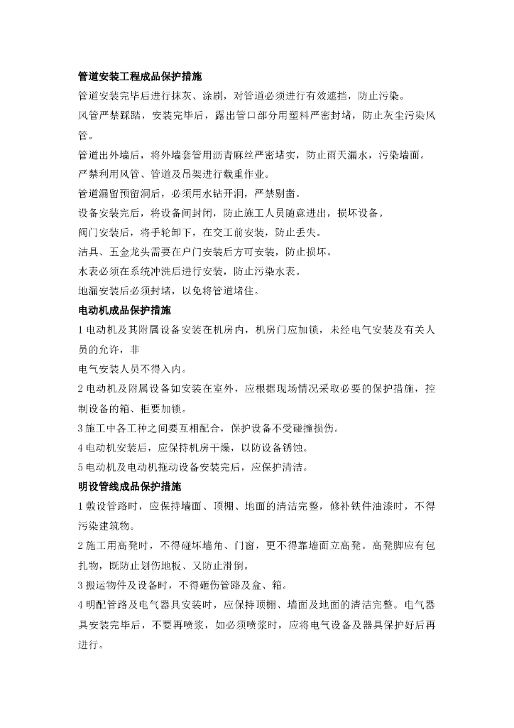 机电安装工程成品保护措施.doc