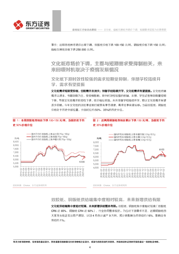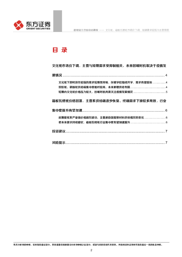 东方证券:造纸轻工行业:文化纸、箱板瓦楞纸市场价下调,短期需求较弱为主要原因.pdf