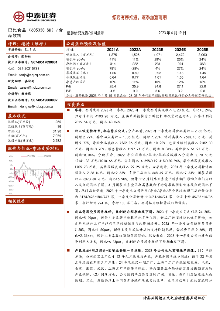 中泰证券:巴比食品(605338)-拓店有序推进,逐季加速可期.pdf