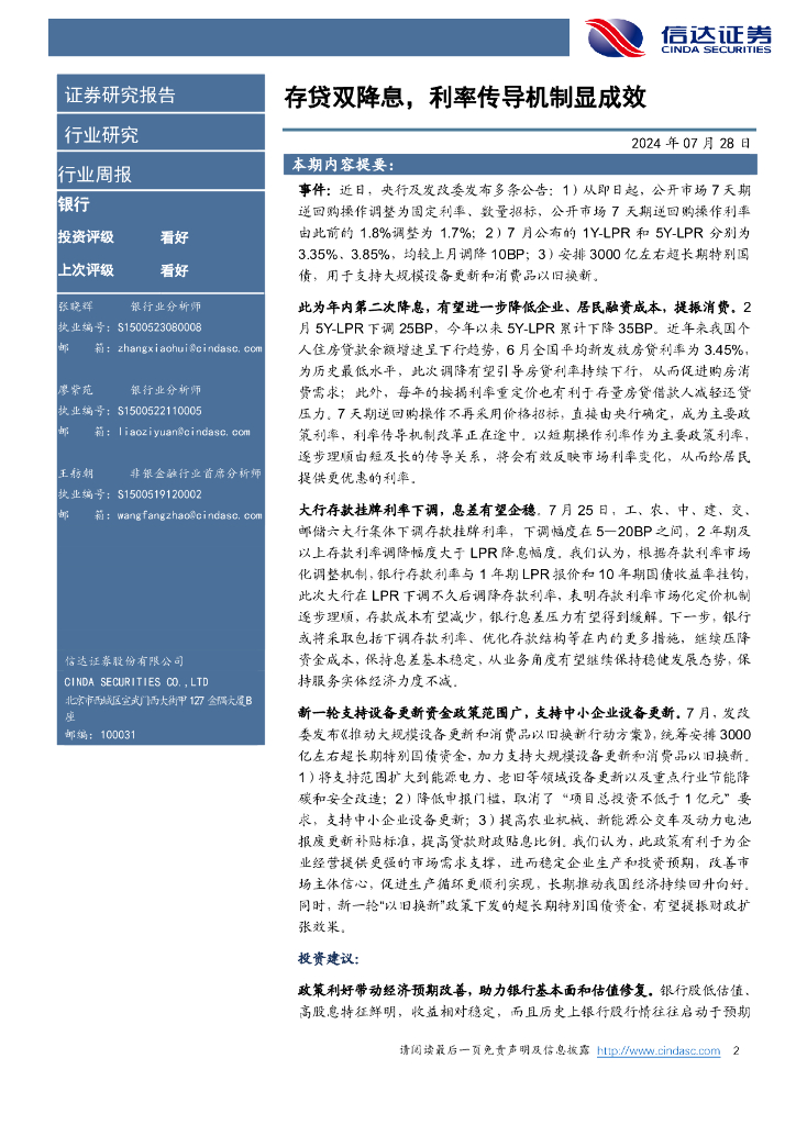 信达证券:存贷双降息,利率传导机制显成效银行.pdf