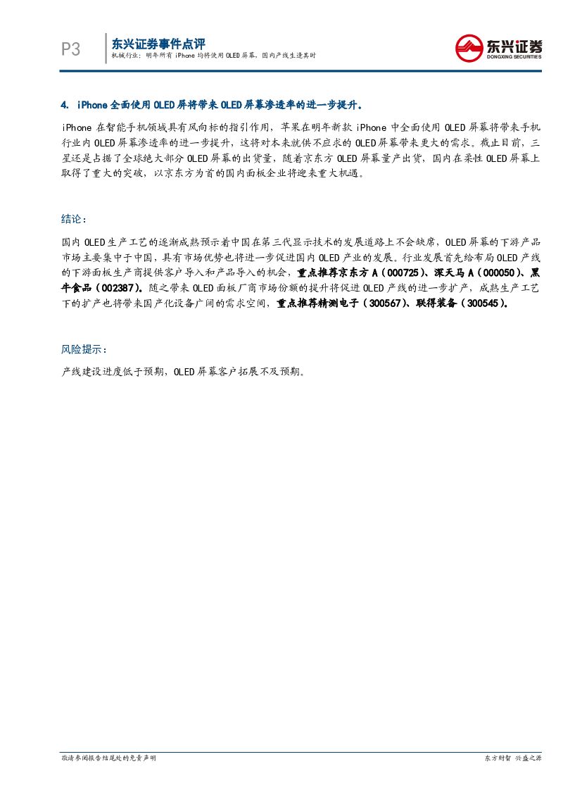东兴证券:机械行业事件点评:明年所有iPhone均将使用OLED幕,国内产线生逢其时.pdf