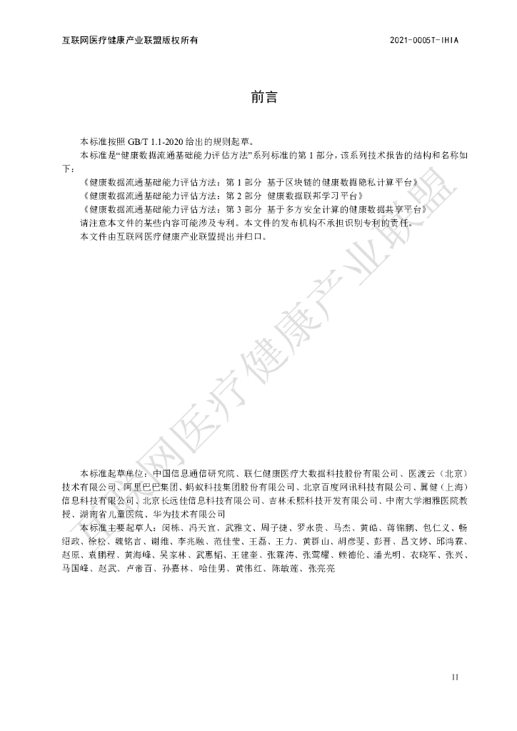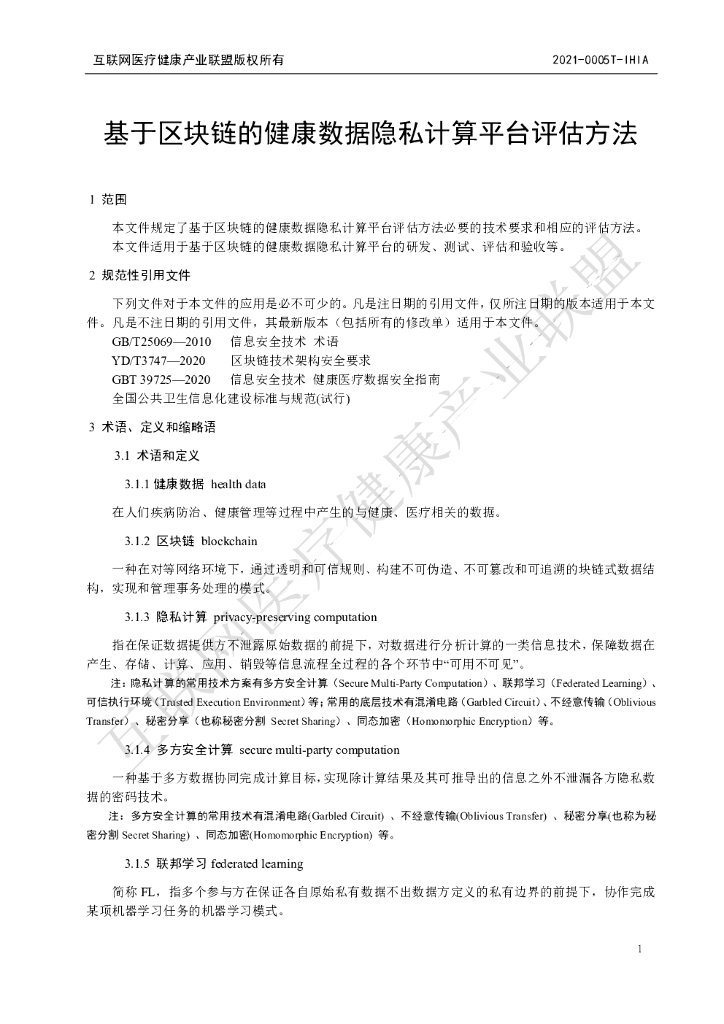 互联网医疗健康产业联盟:健康数据流通基础能力评估方法:第1部分 基于区块链的健康数据隐私计算平台.pdf