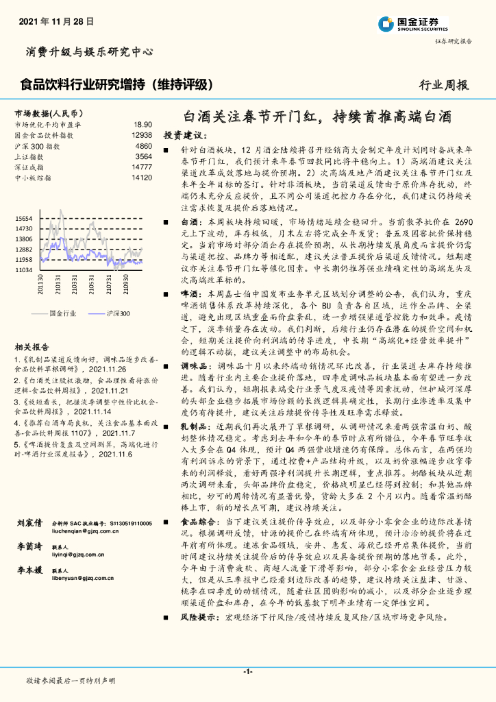 国金证券:食品饮料行业研究:白酒关注春节开门红,持续首推高端白酒.pdf
