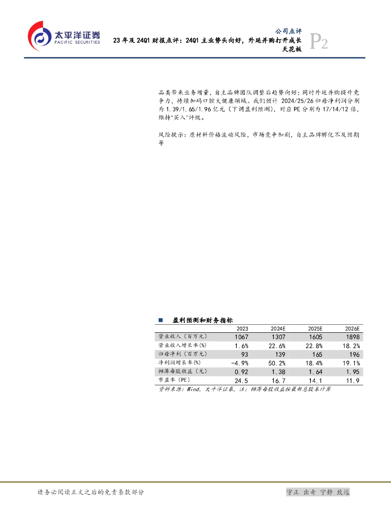 太平洋证券:倍加洁(603059)-23年及24Q1财报点评:24Q1主业势头向好,外延并购打开成长天花板.pdf