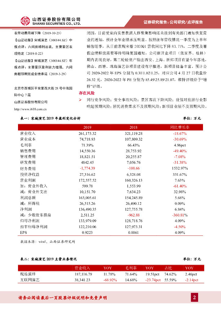 山西证券:宋城演艺(300144)-疫情下20Q1业绩承压明显 中长期看好复园及储备项目落地增持.pdf