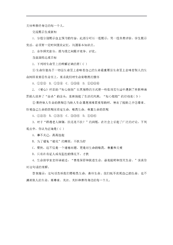 七年级上册 初中道德与法治8.2《敬畏生命》教学设计1.doc