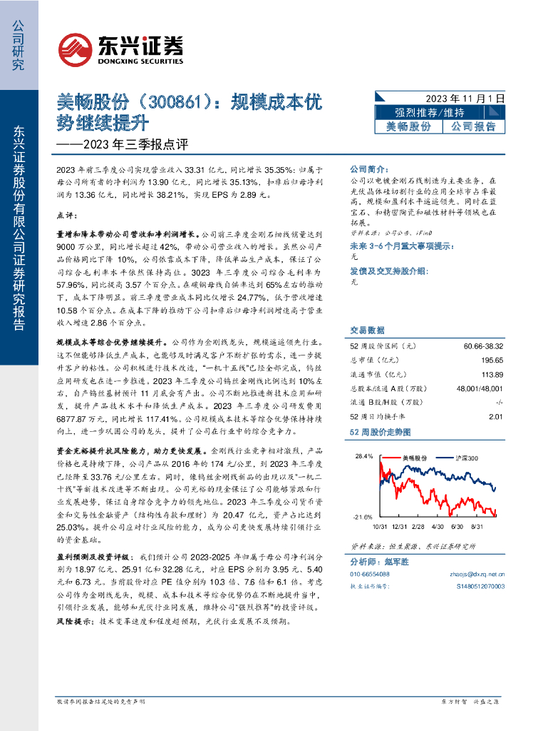 东兴证券:美畅股份(300861)-2023年三季报点评:金刚线龙头规模成本等综合优势继续提升.pdf