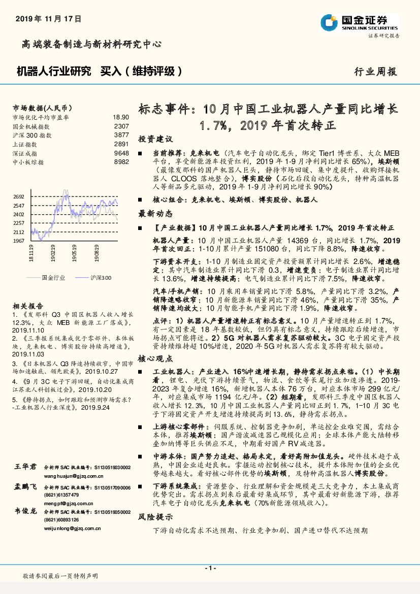 国金证券:机器人行业研究周报:标志事件:10月中国工业机器人产量同比增长1.7%,2019年首次转正.pdf