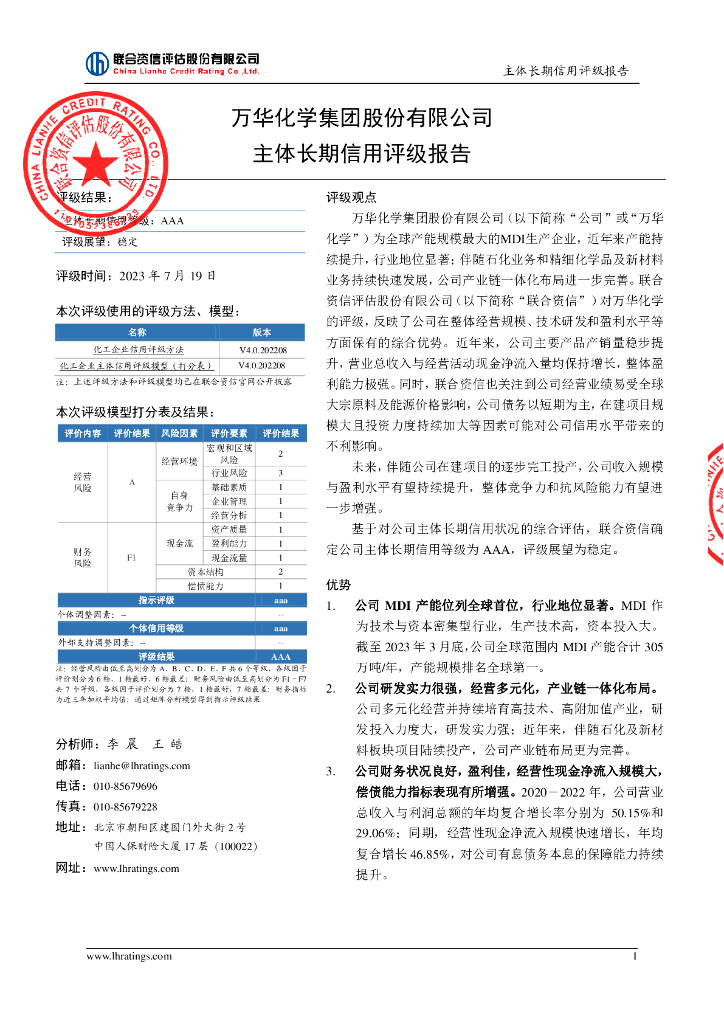 联合资信:万华化学集团股份有限公司主体长期信用评级报告.pdf