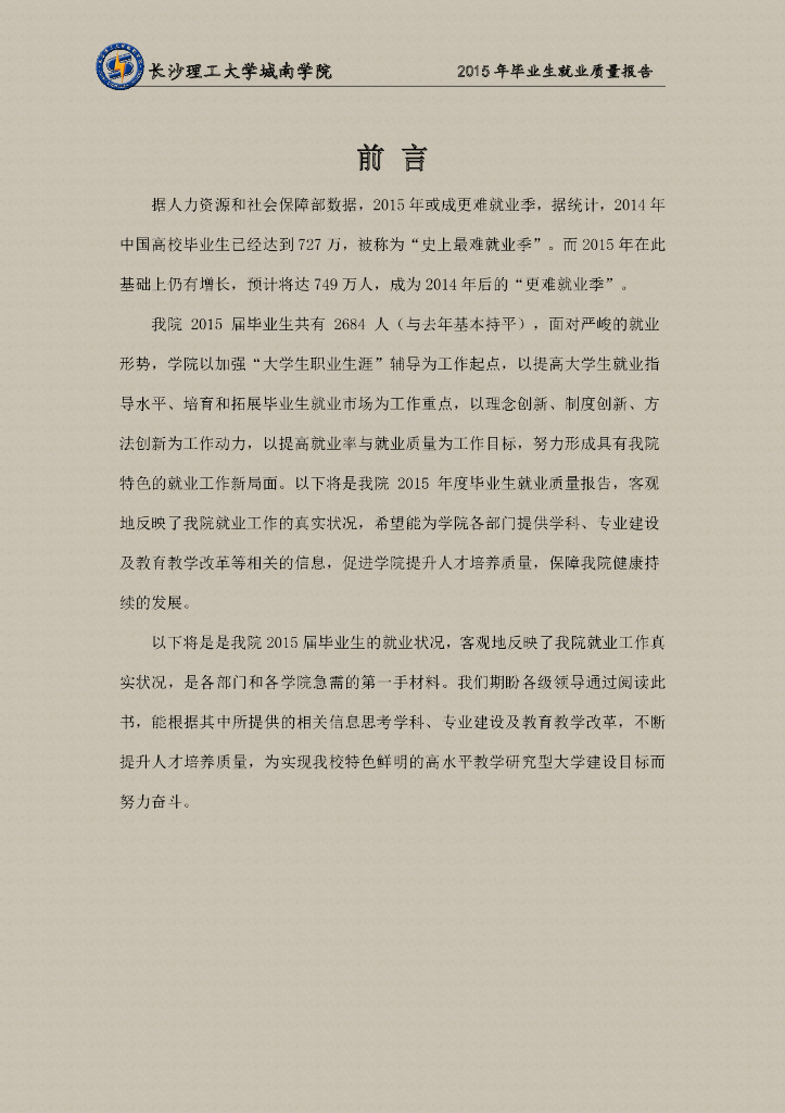 长沙理工大学城南学院2015年度毕业生就业质量报告.pdf