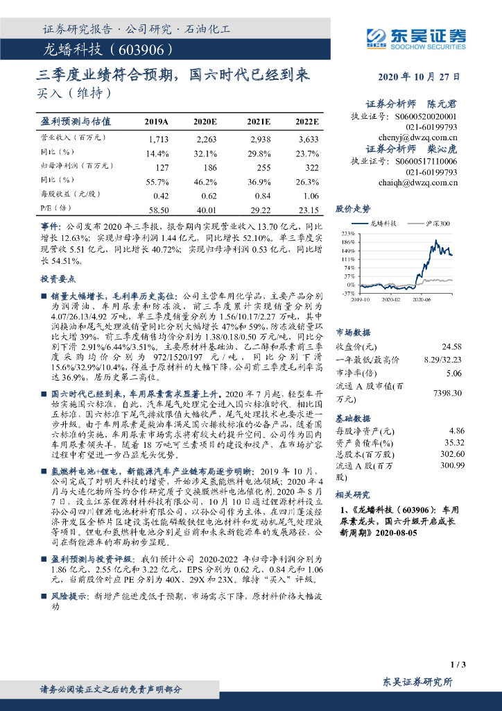 东吴证券:龙蟠科技(603906)-三季度业绩符合预期,国六时代已经到来.pdf