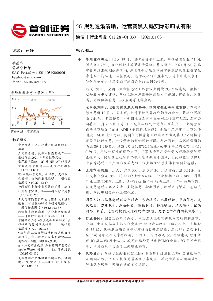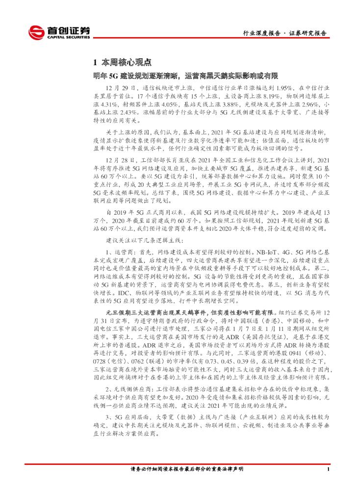 首创证券:通信行业周报:5G规划逐渐清晰,运营商黑天鹅实际影响或有限.pdf