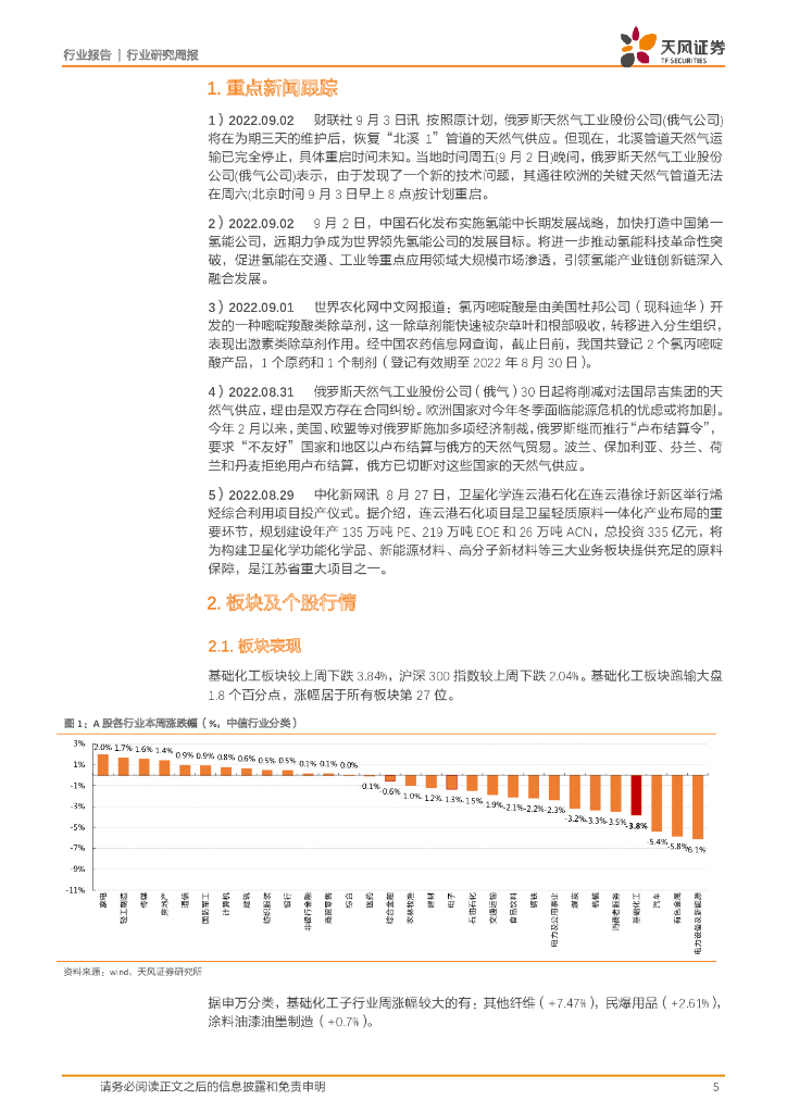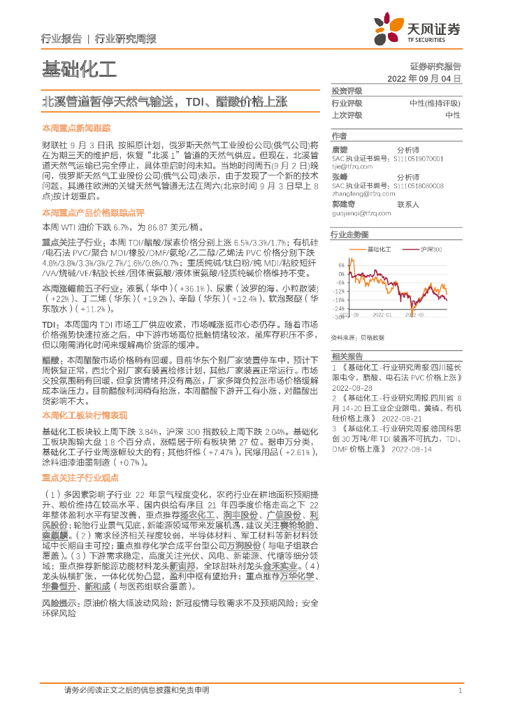 天风证券:基础化工行业研究周报:北溪管道暂停天然气输送,TDI、醋酸价格上涨.pdf