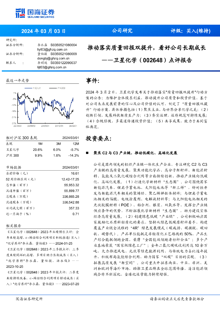 国海证券:卫星化学(002648)-点评报告:推动落实质量回报双提升,看好公司长期成长.pdf