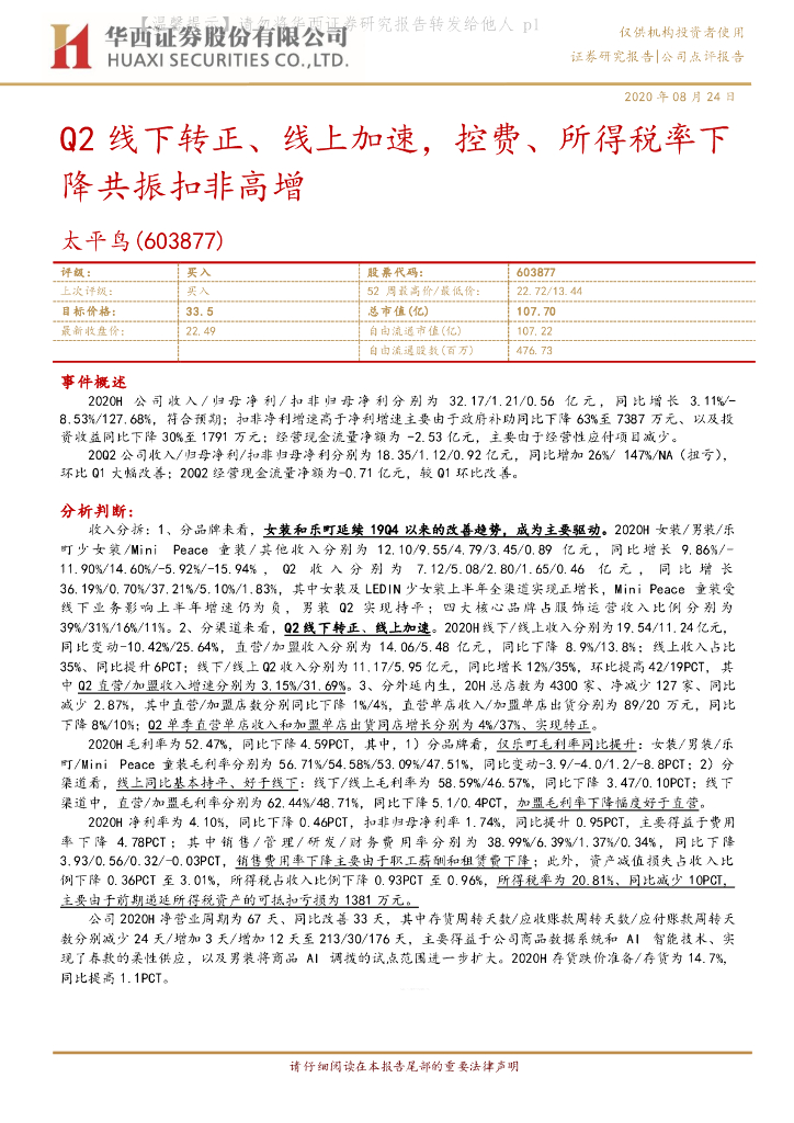 华西证券:太平鸟(603877)-Q2线下转正、线上加速,控费、所得税率下降共振扣非高增.pdf