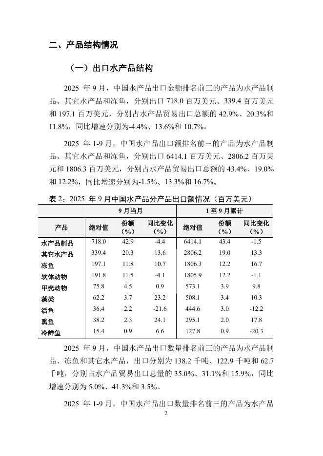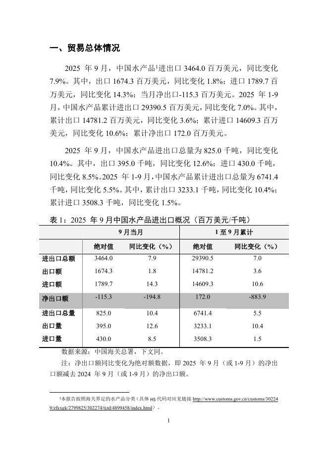 对外经济贸易大学:中国水产品贸易月度监测报告(2025年1-9月).pdf