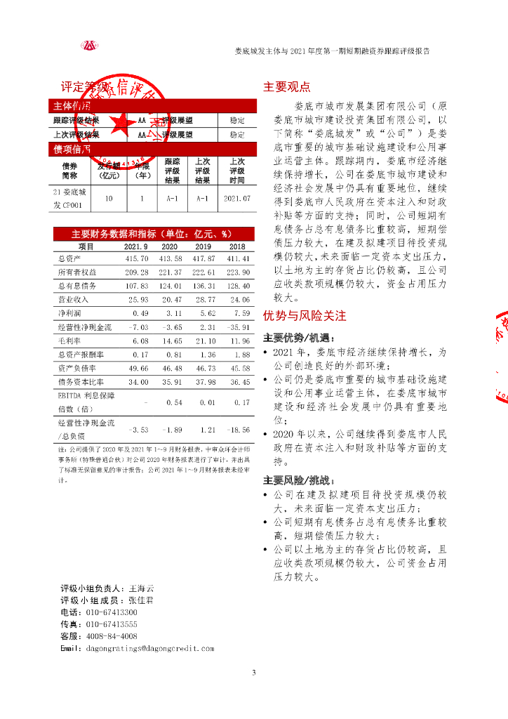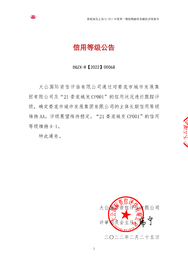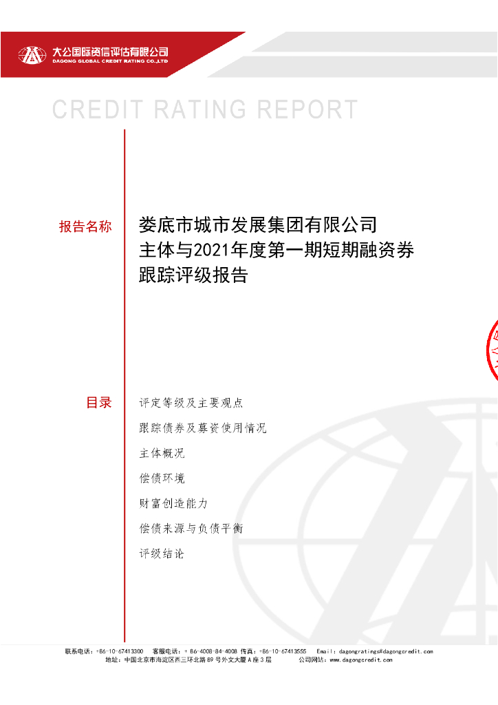 大公:娄底市城市发展集团有限公司主体与2021年度第一期短期融资券跟踪评级报告.pdf