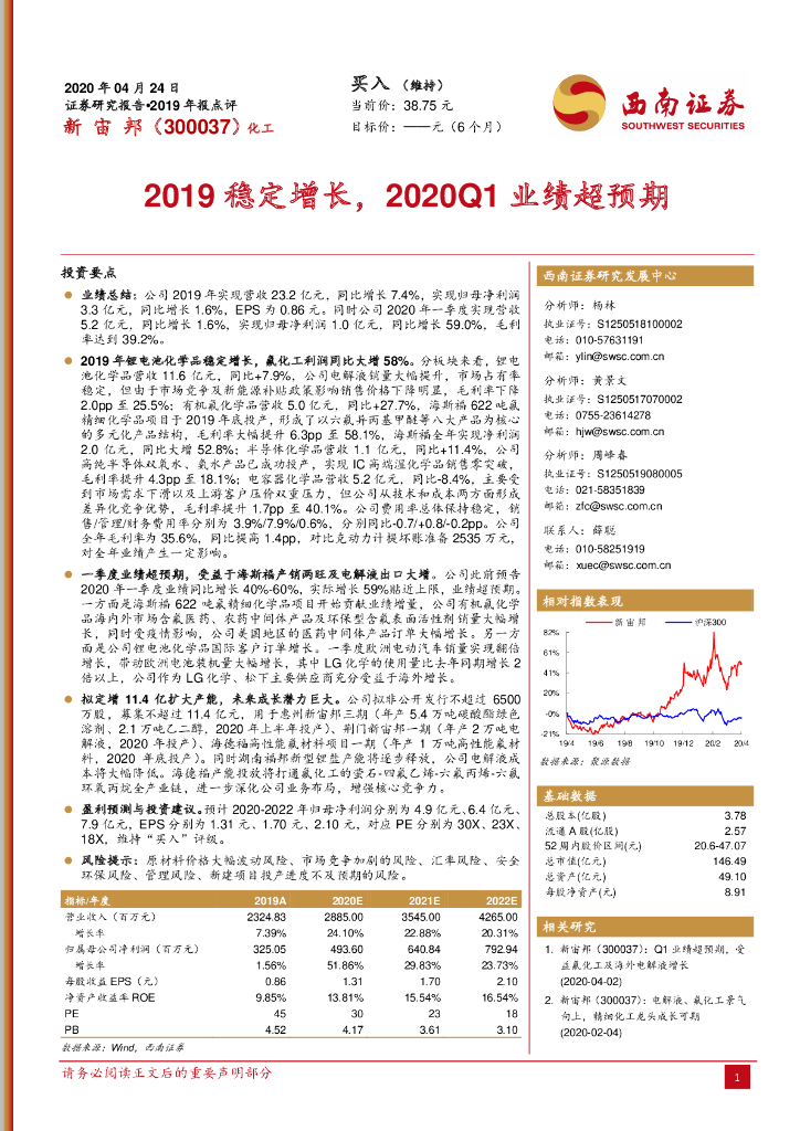 西南证券:新宙邦(300037)-2019稳定增长,2020Q1业绩超预期.pdf