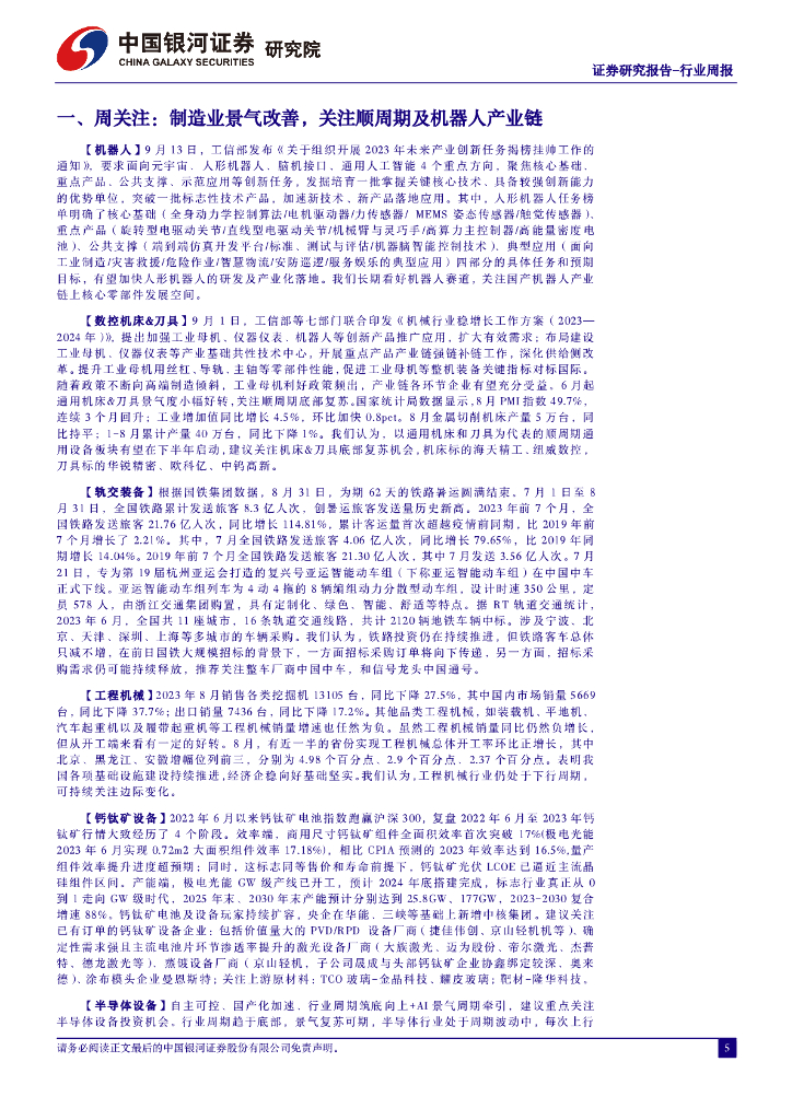 中国银河:机械设备行业周报:制造业景气改善,关注顺周期及机器人产业链.pdf