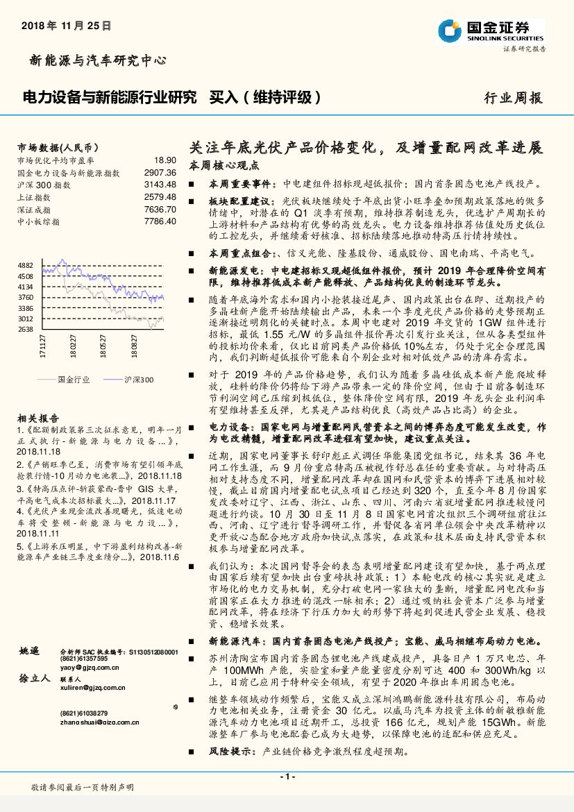 国金证券:电力设备与新能源行业研究周报:关注年底光伏产品价格变化,及增量配网改革进展.pdf