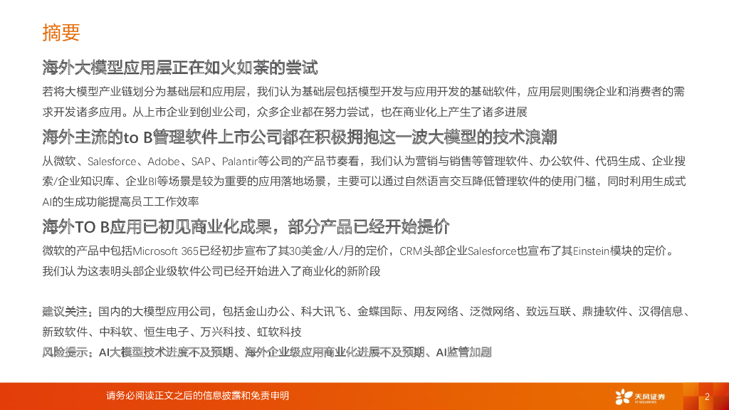 天风证券:计算机行业大模型海外进展梳理之一:to B企业级应用层奇点已来.pdf