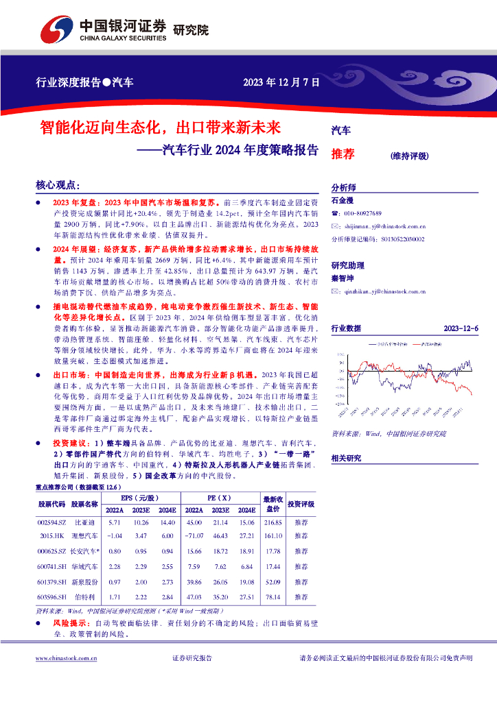 中国银河:汽车行业2024年度策略报告:智能化迈向生态化,出口带来新未来.pdf
