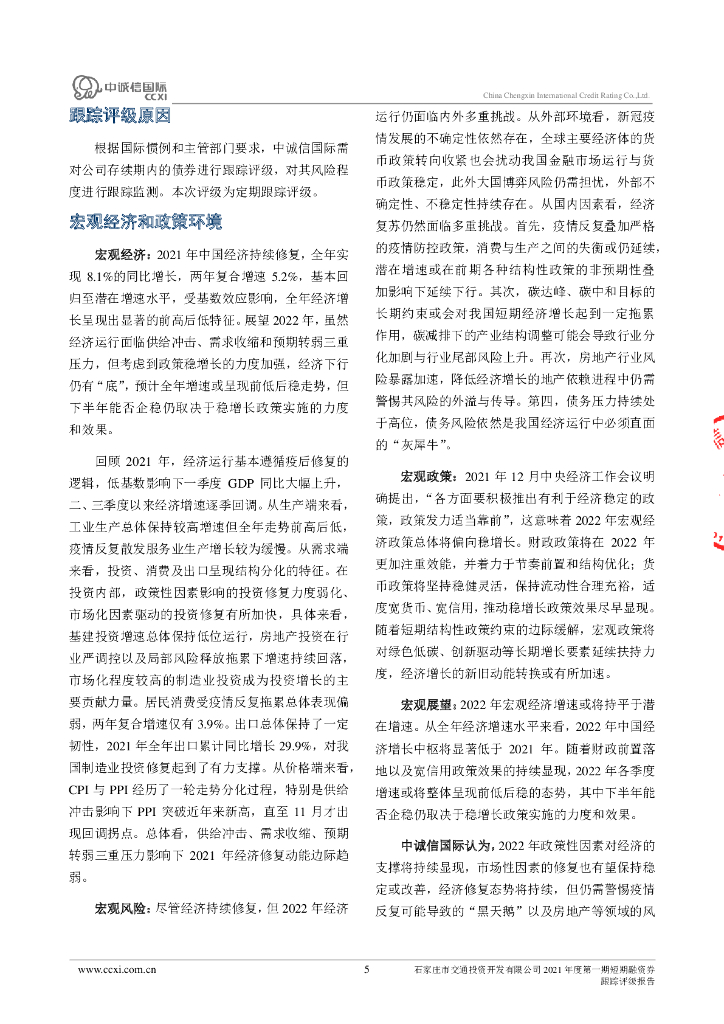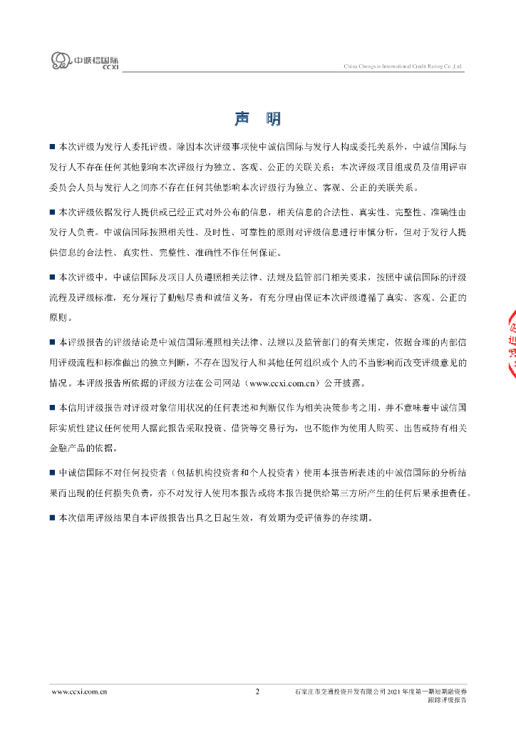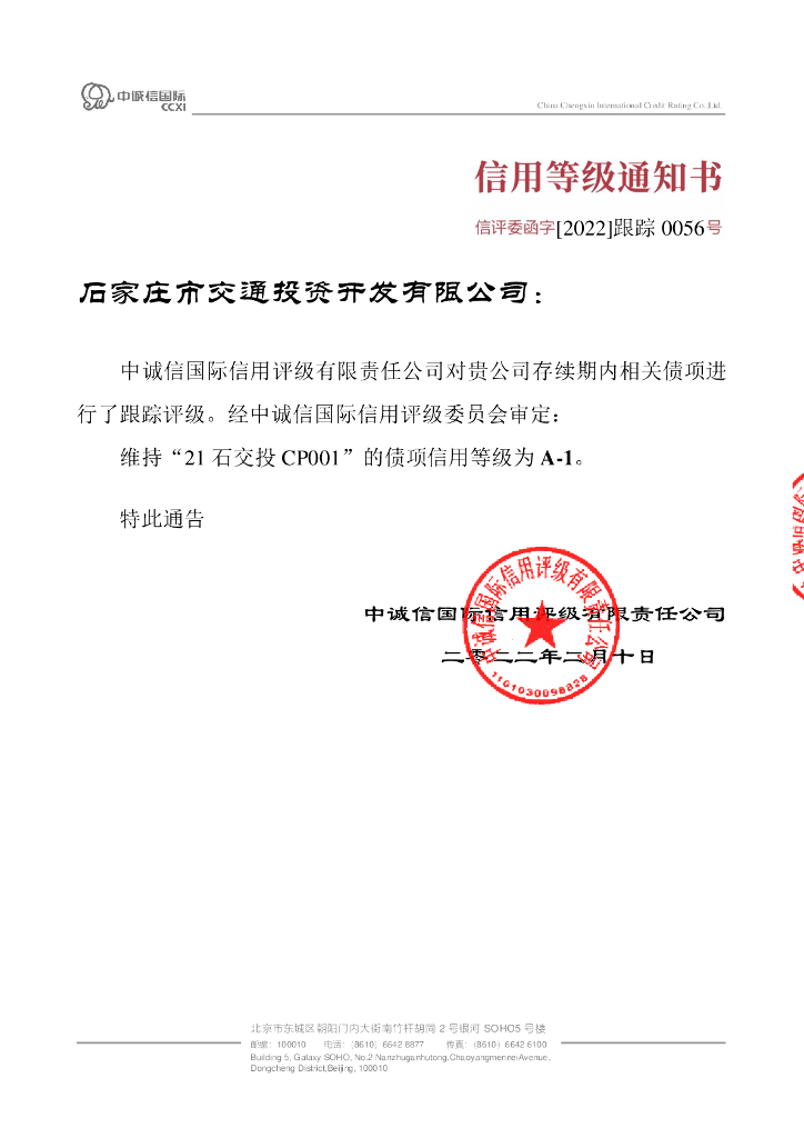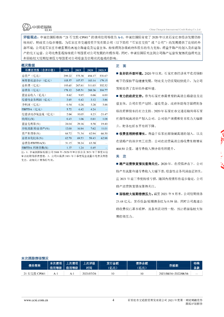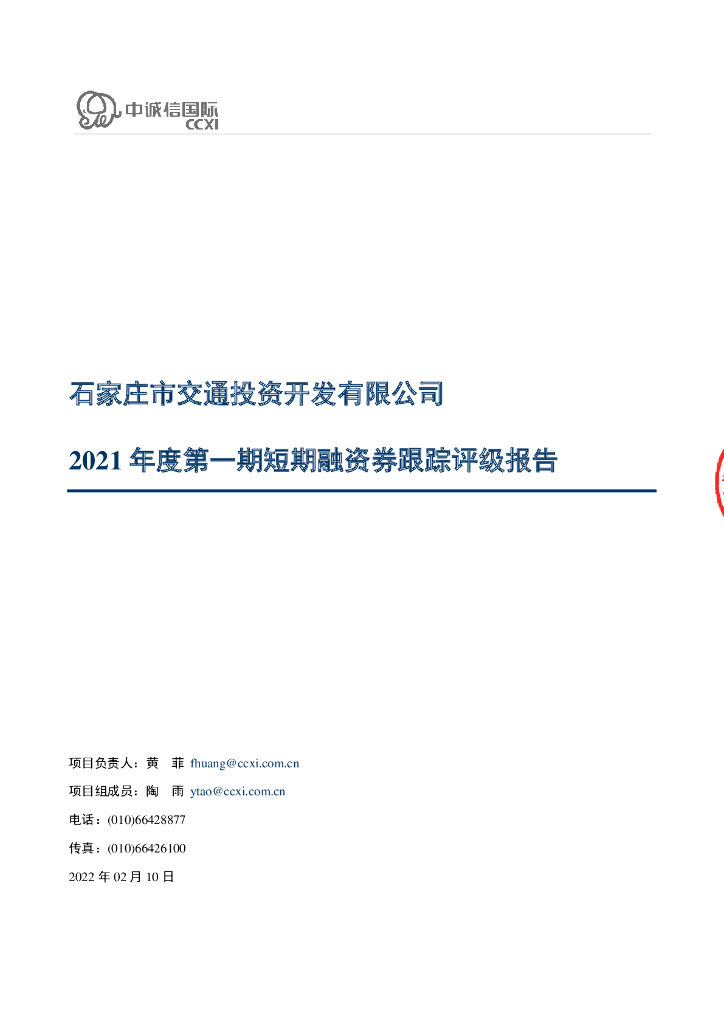 中诚信:石家庄市交通投资开发有限公司2021年度第一期短期融资券跟踪评级报告.pdf