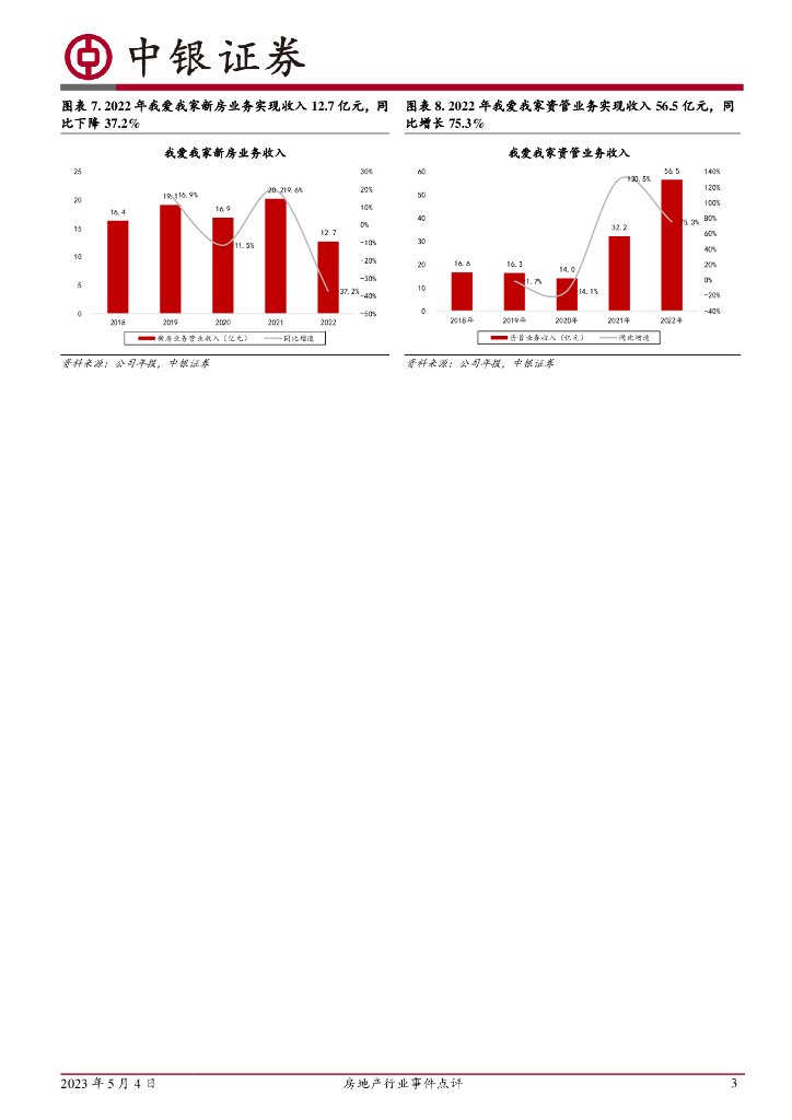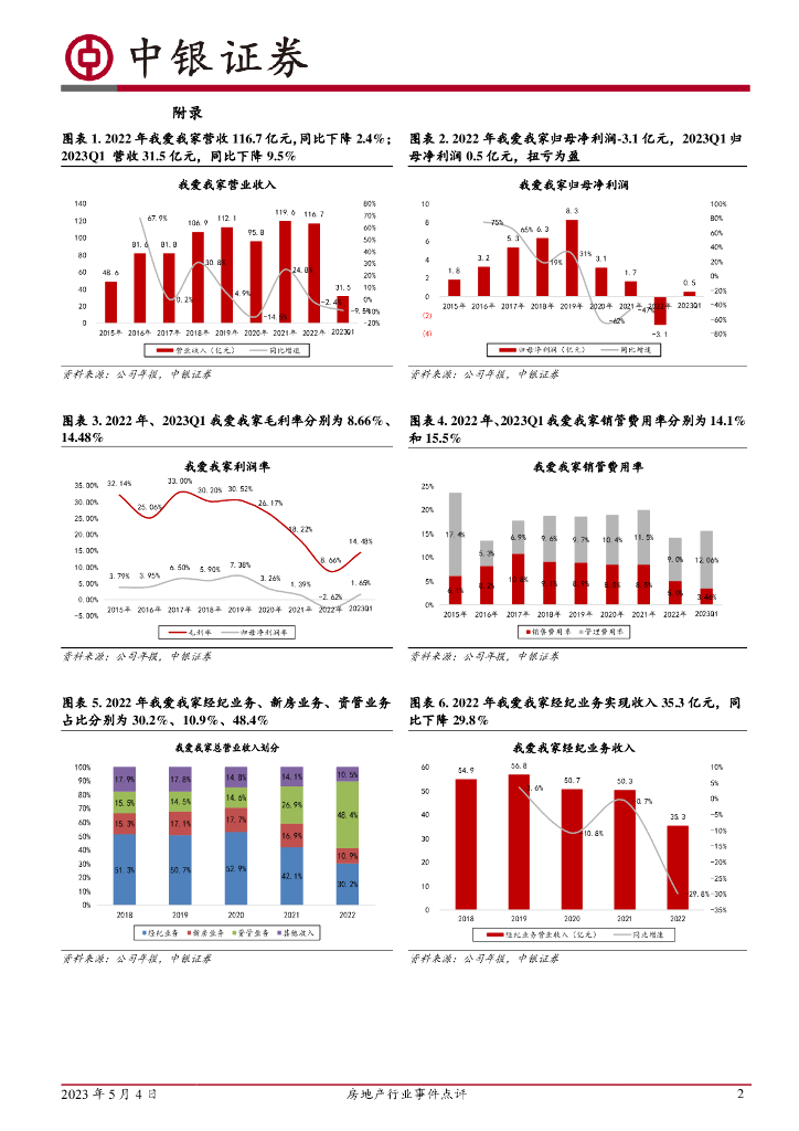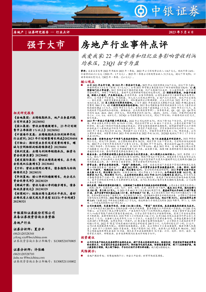 中银证券:房地产行业事件点评:我爱我家:22年受新房和经纪业务影响营收利润均承压,23Q1扭亏为盈.pdf