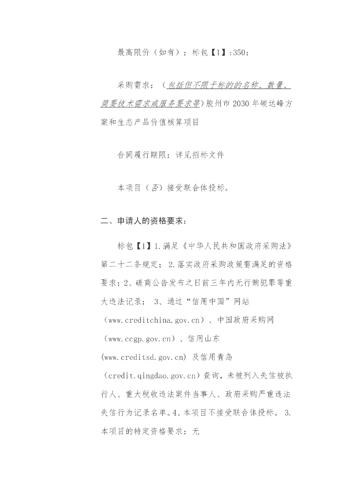 青岛胶州市2030年碳达峰方案和生态产品价值核算项目招标文件.pdf