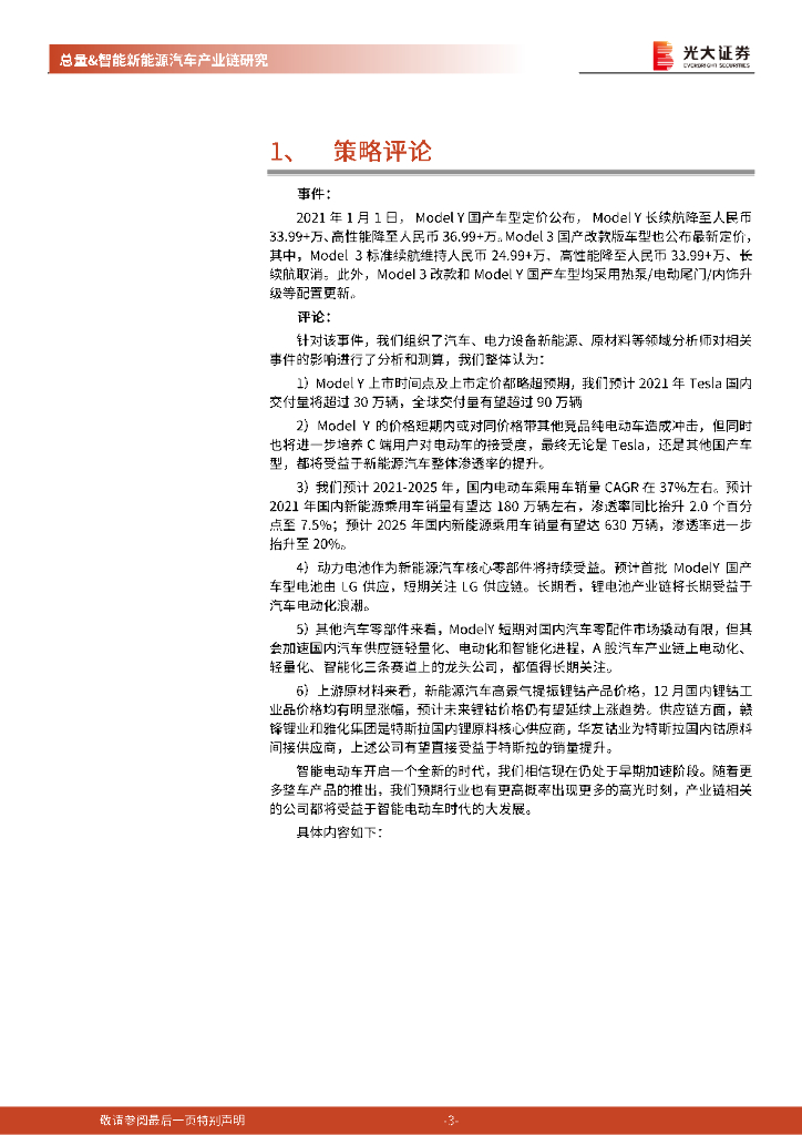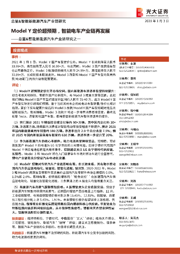 光大证券:总量智能新能源汽车产业链研究之一:Model Y定价超预期,智能电车产业链再发展.pdf