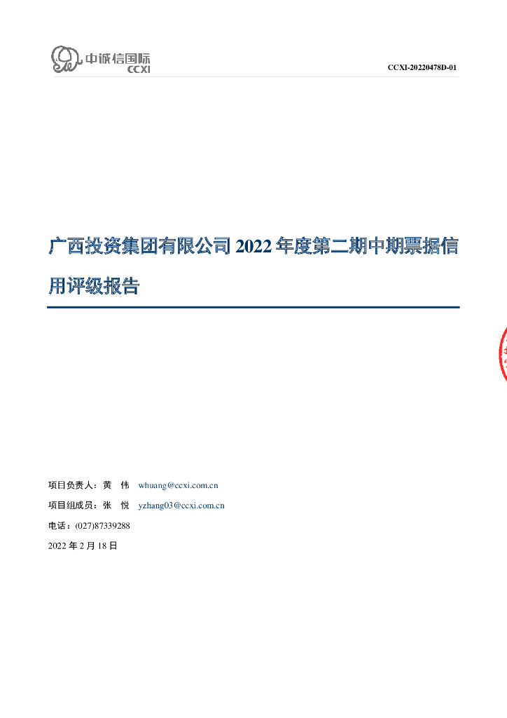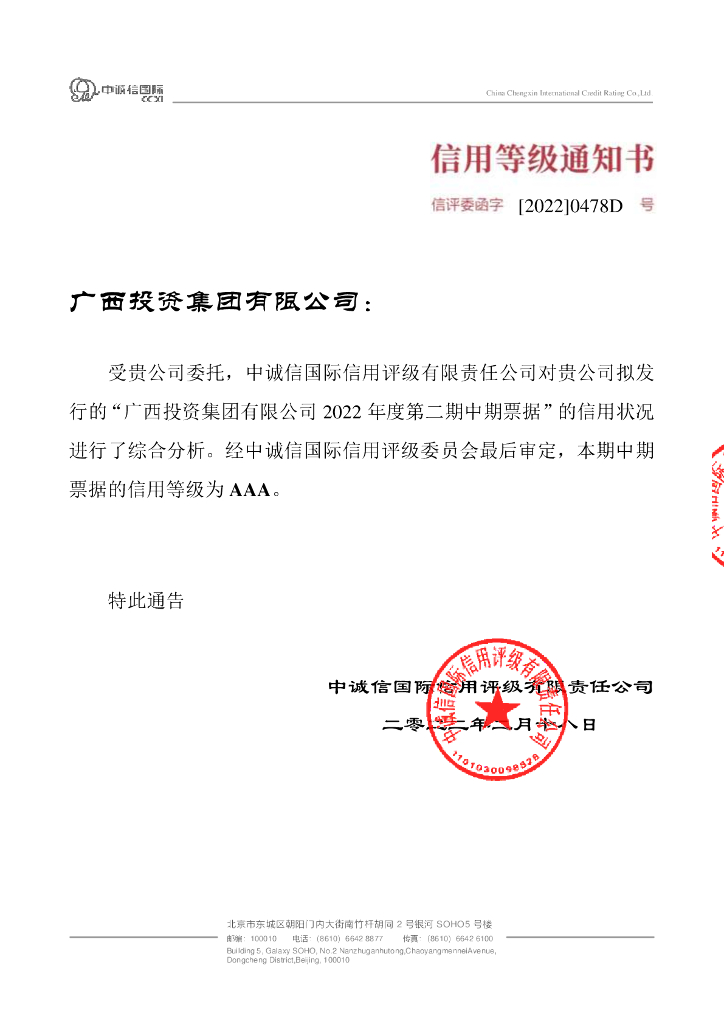 中诚信:广西投资集团有限公司2022年度第二期中期票据信用评级报告.pdf