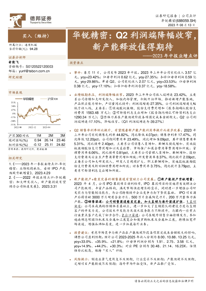 德邦证券:2023年中报业绩点评:华锐精密:Q2利润端降幅收窄,新产能释放值得期待.pdf