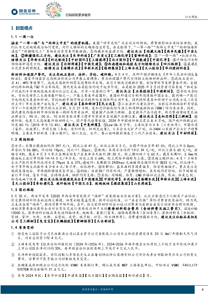 国金证券:非金属建材周观点:关税之下,重视“一带一路”、“西部大开发”和新材料国产替代.pdf