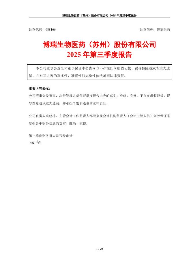 688166-博瑞医药:2025年第三季度报告.pdf