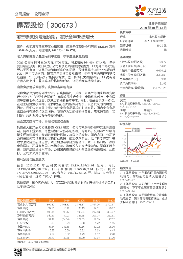 天风证券:佩蒂股份(300673)-前三季度预增超预期,看好全年业绩增长.pdf