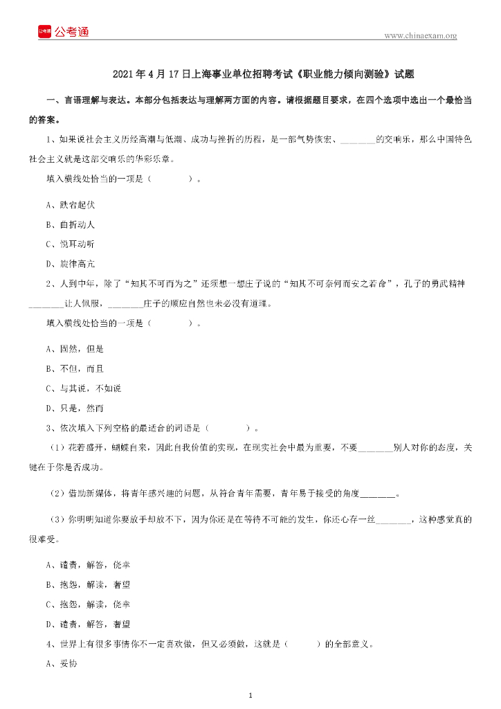 2021年4月17日上海事业单位招聘考试《职业能力倾向测验》试题.pdf